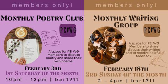- A FREE monthly poetry club for PEI Writers’ Guild Members