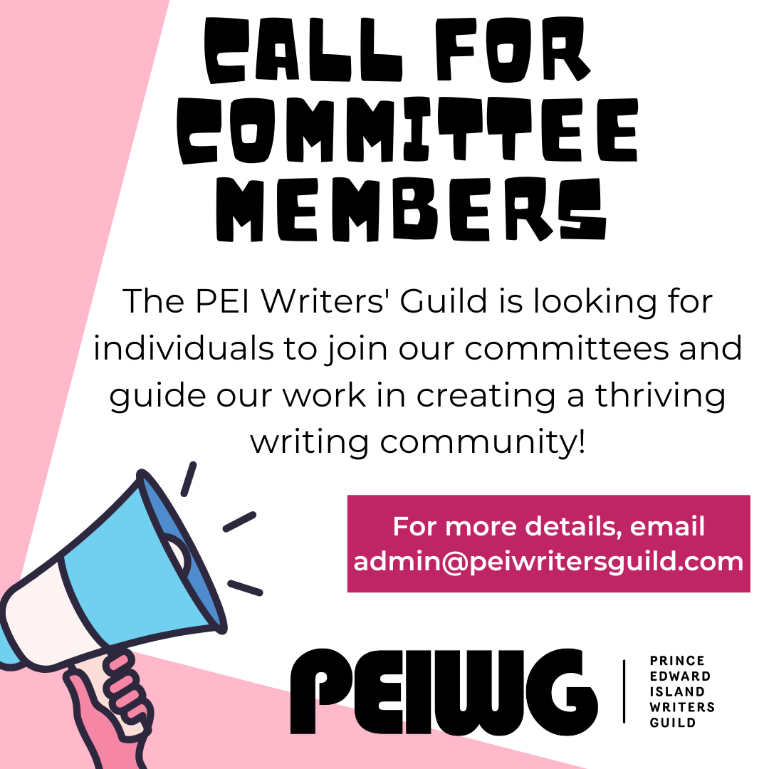 Have big news to share or know of a writing opportunity that could benefit our community? We’d love to hear from you! While we may not be able to include everything, please email us at NEWSLETTER@PEIWRITERSGUILD.COM with your news or opportunities, and we’ll gladly consider it for next month’s newsletter.